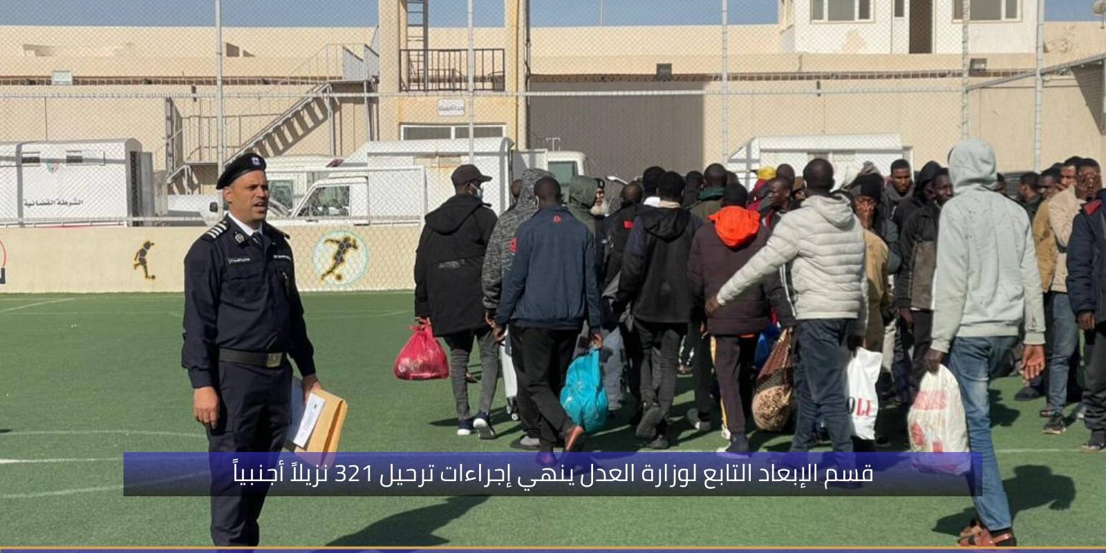 باشراف مباشر من معالي وزيرة العدل السيدة حليمة إبراهيم، والسيد وكيل عام الوزارة، ورئيس جهاز الشرطة القضائية، أنهي قسم الإبعاد بجهاز الشرطة القضائية التابع لوزارة العدل، يوم السبت الموافق 3 يناير 2026، إجراءات ترحيل 321 نزيلاً أجنبياً من جنسيتي تشاد والنيجر، ممن صدرت بحقهم أحكام قضائية بالإبعاد خارج ليبيا.