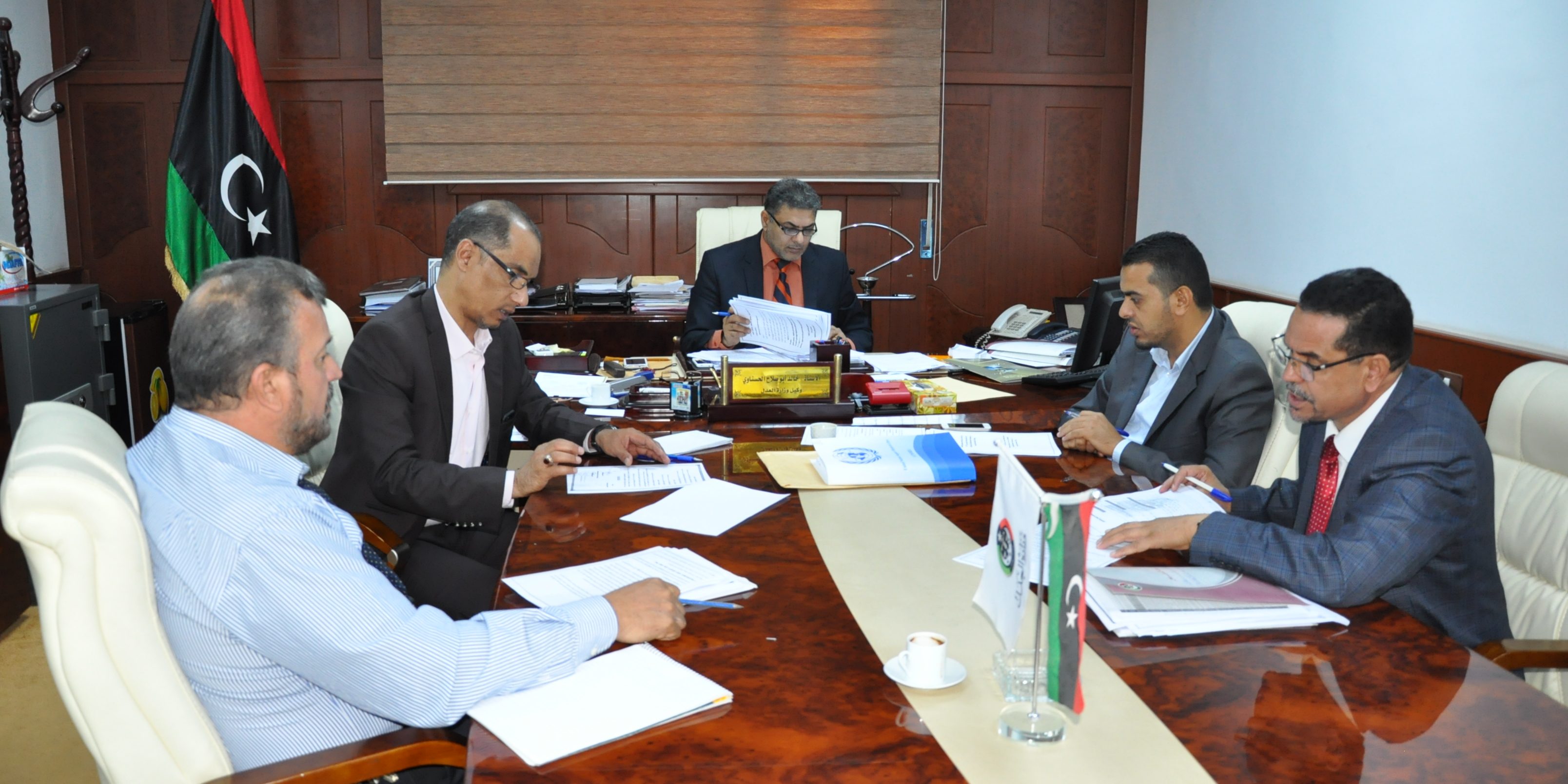 وترأس الاجتماع السيد ” خالد أبو صلاح ” وكيل وزارة العدل لدولة القانون وحقوق الإنسان رئيس اللجنة، بحضور السادة أعضاء اللجنة مدير إدارة العلاقات العامة والتعاون ” نوري البكاي”، ومستشار الوزير ” محمد حمودة “، وعضو فريق تحسين السجون بجهاز الشرطة القضائية العقيد ” زهير بوهدرة “، ومقرر اللجنة ” محمد بركان “.