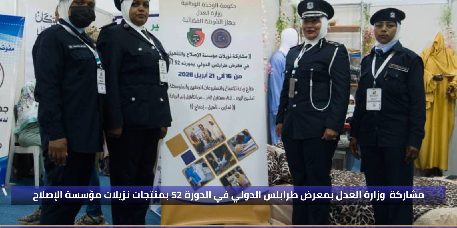 شاركت وزارة العدل وجهاز الشرطة القضائية، عبر وحدة تمكين المرأة بالوزارة ومؤسسة الإصلاح والتأهيل (النساء طرابلس)، في فعاليات الدورة الثانية والخمسين لمعرض طرابلس الدولي، التي افتتحت أمس الجمعة الموافق 17 أبريل 2026.