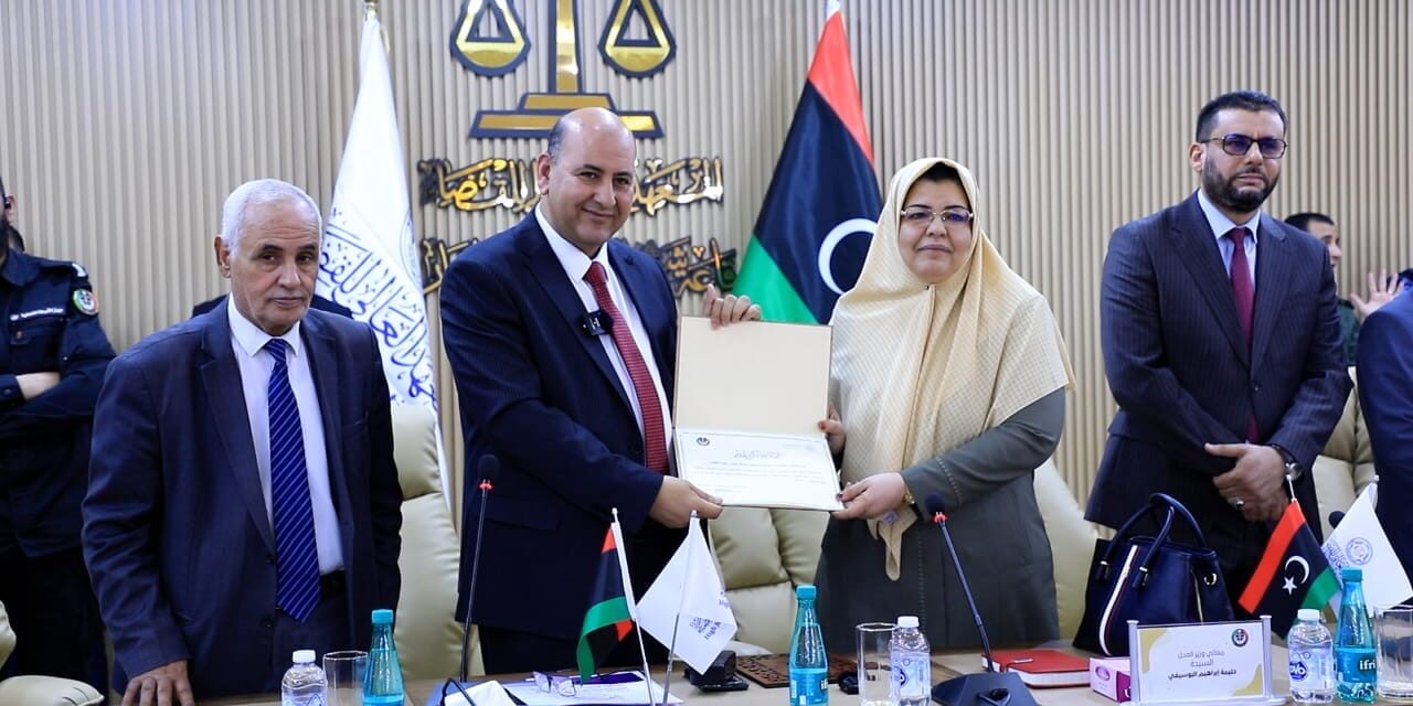 حضرت السيدة حليمة ابراهيم عبدالرحمن وزيرة العدل اليوم الخميس 25 من شهر أبريل الجاري الإحتفالية التي أقامها المعهد العالي للقضاء بمناسبة اختتام ورشتي العمل حول المنهجية في تسبيب الاحكام القضائية، وإدارة جلسات المحاكم التي نظمهما المعهد العالي للقضاء واستهدفت عددا من القضاة الجدد من مختلف المحاكم.