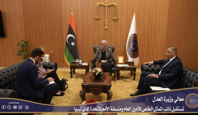 معالي وزيرة العدل تستقبل السيدة اولريكا ريتشاردسون نائب الممثل الخاص للامين العام للامم المتحدة في ليبيا