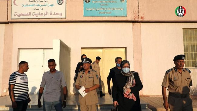 ضمن الزيارة التي تجريها معالي وزيرة العدل للمنطقة الشرقية للوقوف على سير العمل بالمرافق العدلية قامت الوزيرة يوم الثلاثاء 13 يوليو 2021 بزيارة مؤسسة الأصلاح والتأهيل قرنادة، وحضر اللقاء عميد عبدربه الجراري مدير فرع جهاز الشرطة القضائية البيضاء و عقيد علي الشامي معاون مدير مؤسسة الإصلاح والتأهيل والعميد فرج المبروك رئيس جهاز الشرطة القضائية فرع…