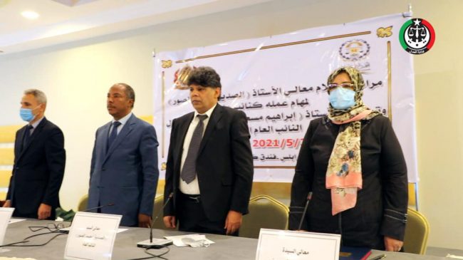 حضرت معالي وزيرة العدل “حليمة إبراهيم عبدالرحمن” اليوم الاثنين الموافق 3 من شهر مايو 2021 ، مراسم إستلام النائب العام الأستاذ “الصديق الصور” من سلفه الأستاذ “إبراهيم مسعود” القائم بأعمال النائب العام سابقا، وحضر المناسبة السادة أعضاء المجلس الأعلى للقضاء وعدد من رؤساء وأعضاء النيابات ومدراء الإدارات بالوزارة . وألقت معالي الوزيرة كلمة هنأت فيها…