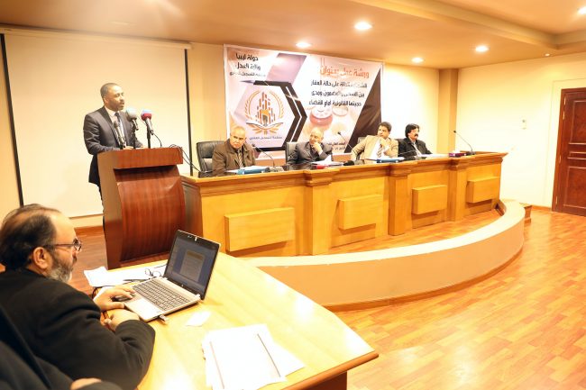انطلقت صباح اليوم بالمعهد العالي للقضاء بطرابلس الاثنين الموافق 25 فبراير 2019م فعاليات ورشة عمل بعنوان الشهادة الدالة على حالة العقار بين الشكل والمضمون ومدى حجيتها القانونية أمام القضاء برعاية وإشراف مصلحة التسجيل العقاري وبحضور السيد مدير إدارة العلاقات العامة والتعاون ممثلاً عن وزارة العدل ورئيس إدارة التفتيش على الهيئات القضائية وأعضاء عن المجلس الأعلى…