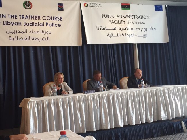 ضمن برنامج التعاون القائم بين جهاز الشرطة القضائية وبعثة الاتحاد الأوروبي للمساعدة في الإدارة المتكاملة للحدود في ليبيا ( اليوبام ) وبدعم من منظمة كرون أجينتس السوسرية وتحت إشراف وزارة العدل بحكومة الوفاق الوطني ، افتتحت بالعاصمة التونسية صباح يوم الاثنين الموافق 13 نوفمبر 2017 الدورة التدريبية الخاصة بإعداد مدربين للشرطة القضائية بشأن أفضل الممارسات …