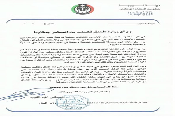 بيان وزارة العدل للتحذير من المساس بمقارها