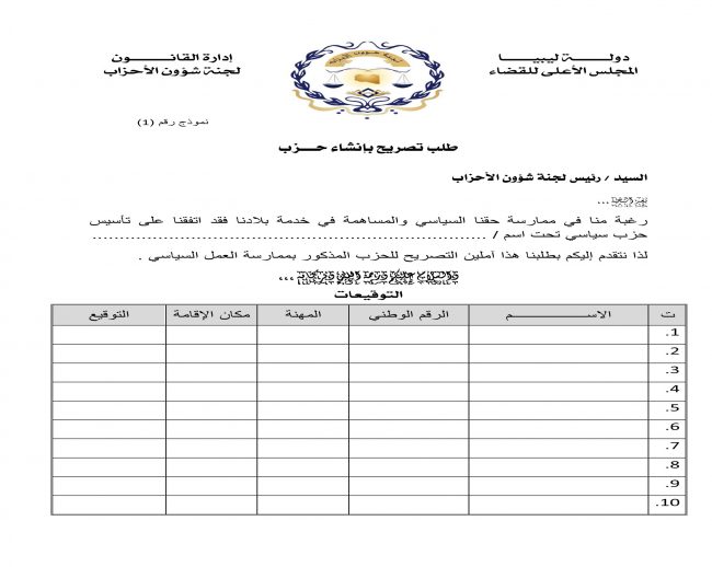 نماذج طلب تسجيل حزب 2021 اضغط هنا للتحميل ……..